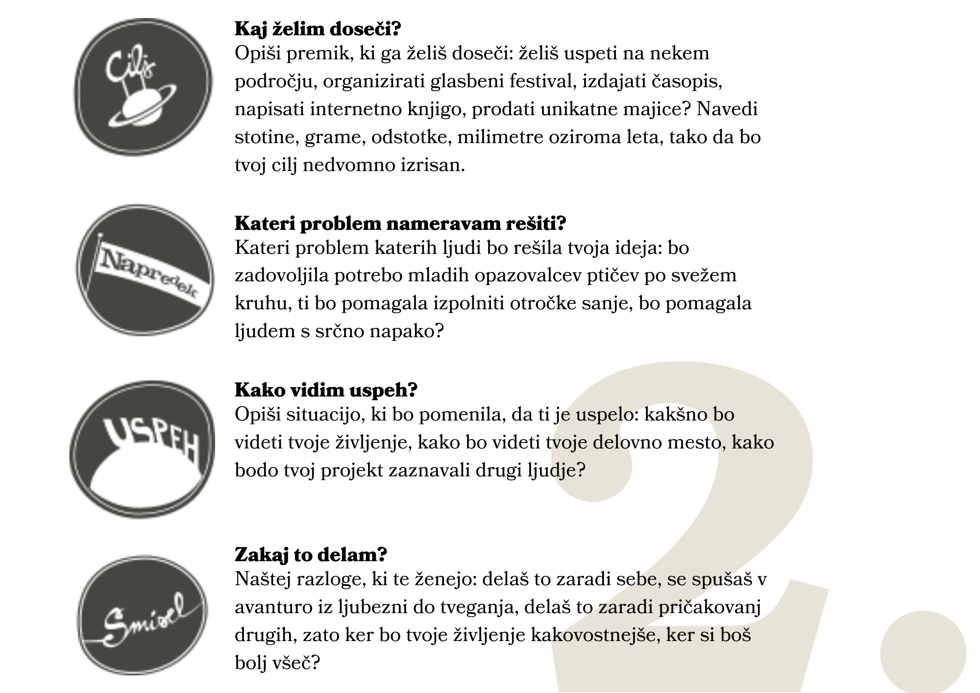 Preden se katapultiraš na Mars, bi bilo dobro vedeti, ali je to sploh dobra ideja. Razumi bistvo svoje ideje: primi jo v roke in jo pošteno pretipaj. Je ideja ali samo misel, pripomba ali želja? Je konkretna, razumljiva ali samo okrogla? In pravzaprav, zakaj rineš ravno v to smer?