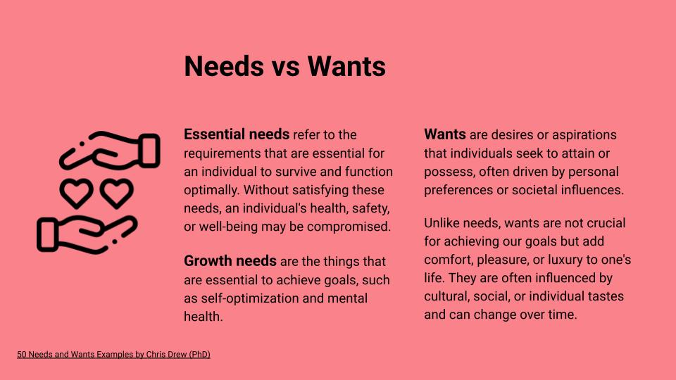 Source: 50 Needs and Wants Examples by Chris Drew (PhD)