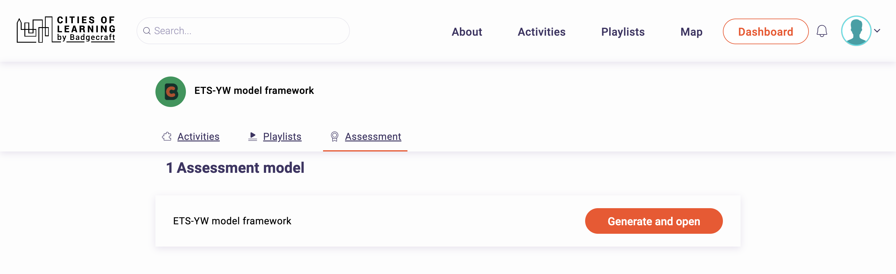 Step 1. Click on this link to access the ETS competence model for youth workers. After initial login/registration, you will need to click on the button "Generate and open" to be able to start self-assessment.
