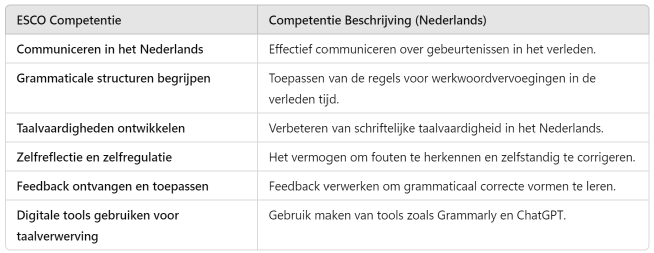 Deze opdracht begeleidt je stap voor stap bij het leren en toepassen van de regels voor de verleden tijd. Door actief te oefenen, feedback te ontvangen en te reflecteren, versterk je jouw kennis en vaardigheden. Laten we beginnen!
