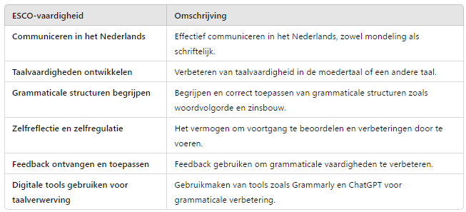 • Je bent in staat om fouten te herkennen en je taalgebruik te verbeteren met behulp van feedback.