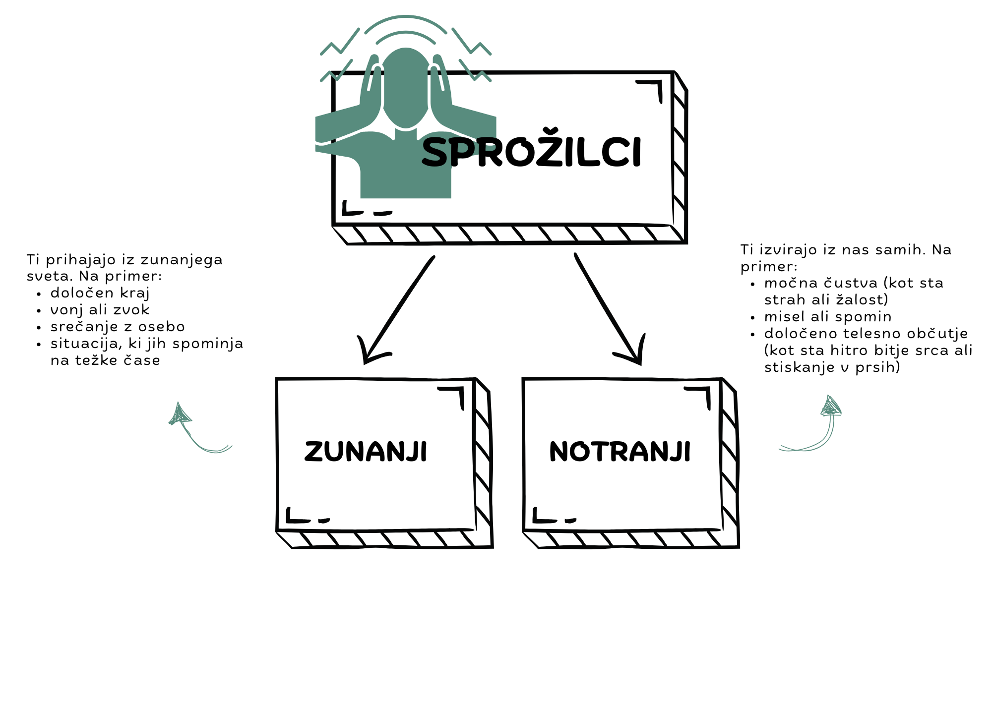 Razumevanje sprožilcev je pomemben del podpore mladim pri njihovem duševnem zdravju. Razčlenimo ga na preprost in jasen način. Sprožilec je nekaj, kar povzroči močno čustveno ali telesno reakcijo, kot je strah, jeza ali žalost. Sprožilci so pogosto povezani s preteklimi težkimi ali travmatičnimi izkušnjami.